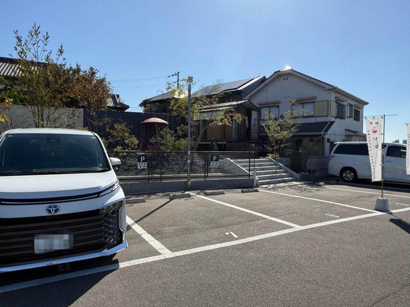 目を引く「赤い和傘」が目印!駐車場もあるよ