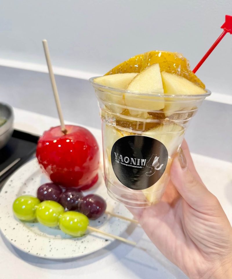 堺で人気のりんご飴専門店の2号店「キンパ&フルーツ飴 YAONI 」が2025年8月5日、藤井寺イオン近くにグランドオープン。