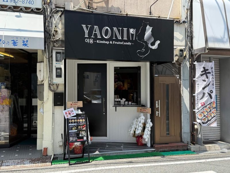 藤井寺イオンから徒歩1分ほど歩いたところに「キンパ&フルーツ飴専門店YAONI」が2025年8月にオープンしました。産地や農家直送の果物を使用し、味にもこだわり抜いたフルーツ飴と本場韓国シェフ直伝のキンパが話題を集めています。藤井寺へ訪れた際には、ぜひ一度足を運んでみて。